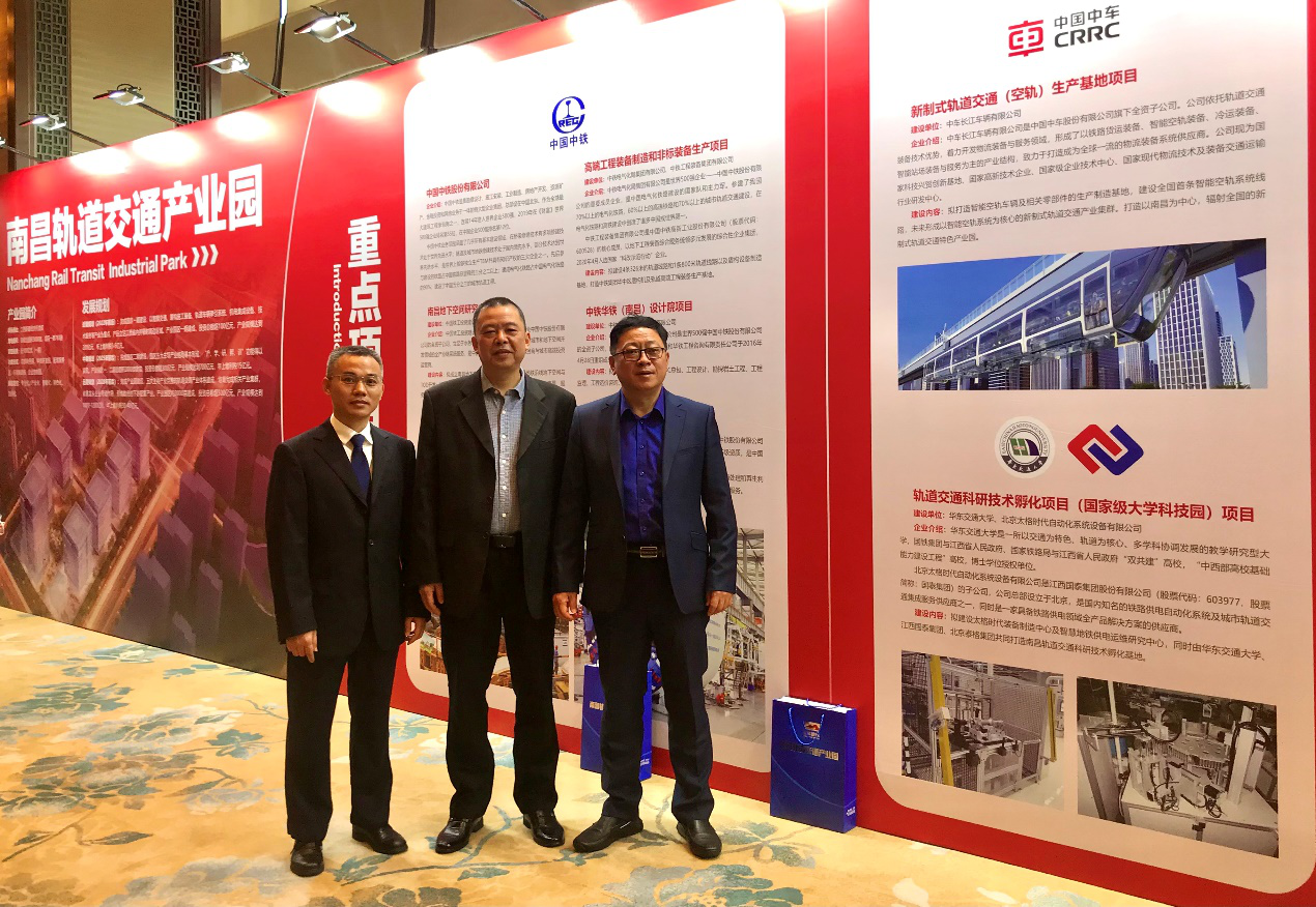 2020年11月16日,董事长黄军、总经理刘升权,副总经理蒋士林代表我司出席了南昌轨道交通产业园(一期)重点项目签约仪式,与南昌轨道交通集团就入驻南昌轨道交通产业园项目正式签署战略合作协议。江西省委常委、南昌市委书记吴晓军,南昌市委副书记、市长黄喜忠,中国中铁总裁陈云,华东交通大学党委书记万明参加了签约仪式。