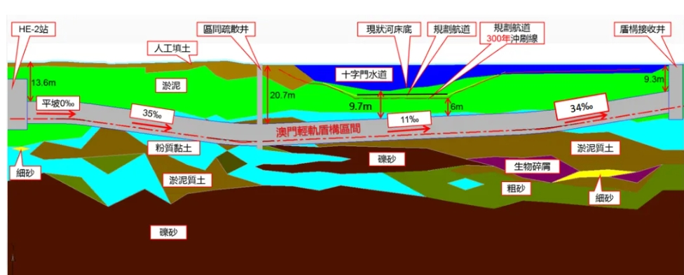 澳门轻轨横琴线是澳门特区政府在轨道交通建设上首次采用盾构穿海隧道施工的项目。隧道施工是本项目的控制性工程。针对盾构隧道区间8米级全国最小转弯半径210米、“V”字形大坡度、洞身全部处于软弱地层等一系列难题,为确保盾构隧道施工安全与质量,项目团队通力配合、积极组织专家论证、创新引入双铰接设计、量身打造大直径土压平衡盾构机“澳琴1号”,配置超前地质探测、高精度气液平衡、土仓内可视化监控、盾尾间隙自动测量、盾构径向间隙补偿等智能化系统,为项目实施提供坚强技术保障。同时,项目创新应用BIM智慧工地平台系统,获得社会各界高度认可,在多领域评选中荣获奖项。