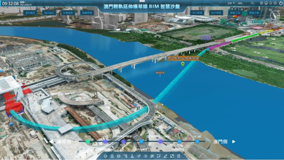 建设团队为本项目打造了智慧工地建管平台,为包括盾构施工在内的全方位建设过程提供了数字化智慧管理服务。牵头完成的《基于BIM的智能设计建造一体化在首条跨境轨道交通澳门轻轨延伸横琴线中的应用》荣获第四届“联盟杯”铁路工程BIM应用大赛综合工程项目BIM应用多阶段组一等奖。