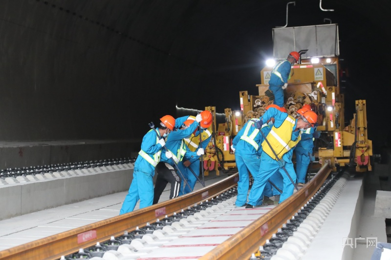 铺轨人员在隧道内作业